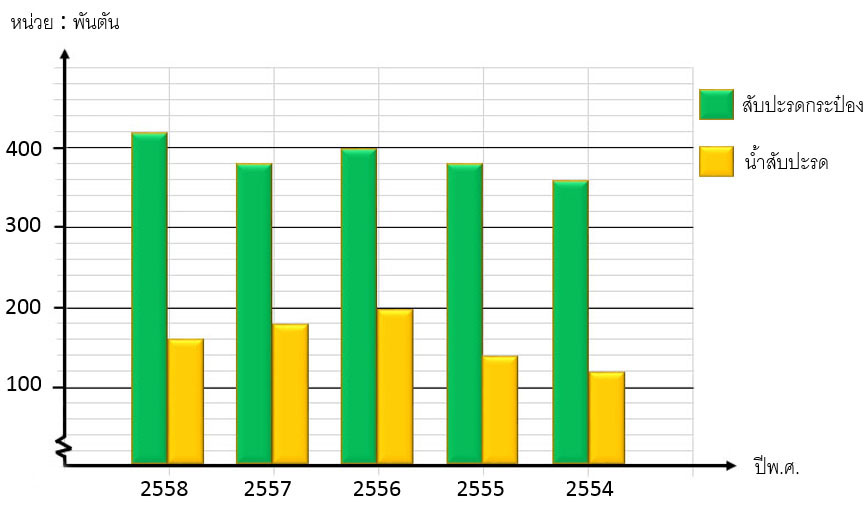 แผนภูมิแท่งเปรียบเทียบผลิตภัณฑ์สับปะรด 2 ประเภท