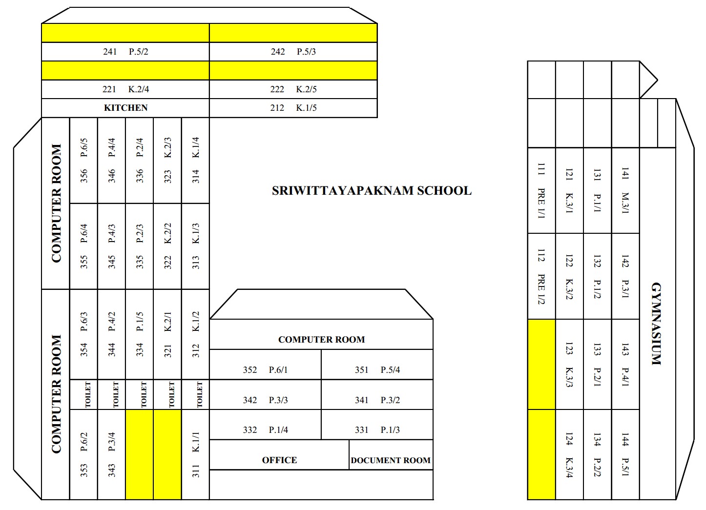 Room Numbers: The first digit is the building number. Building 1 is where most of the IEP classes are in the same building as the gym. Building 2 is the classrooms above the kitchen at the far end against the wall. Building 3 is the new block near the school office. It is L-shaped. The second digit is the floor number. The third digit is the room number on that floor. So, Room 312 is Building 3, 1st Floor, Room 2. The numbers can be seen above the door of the classroom.