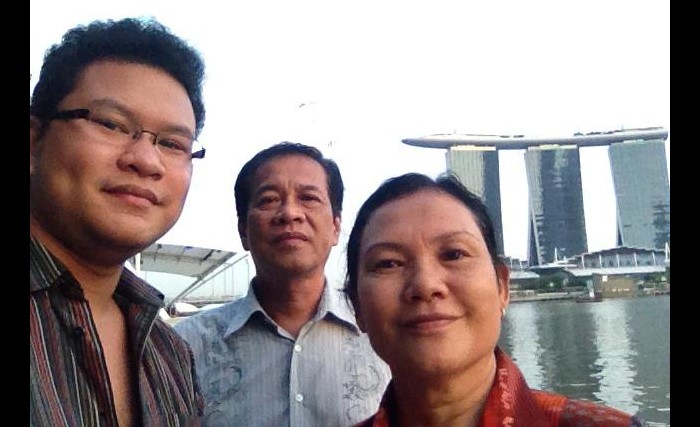 This is Nui with her son Game and husband Lucky. Game was educated abroad and used to work for international companies and so speaks perfect English. He lives outside of the school but you will see him on most days. He has a desk opposite his cousin Mai in the main office. His father is also very proficient in speaking English. He goes to work in Bangkok and you might see him walking to his car around mid-morning. Nui and Lucky live on the 6th floor next to the computer center.